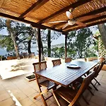O plajă privată retrasă se află la aproape 900 de metri de vila, iar Plaja Koukounaries este la o distanță de 10 minute cu mașina. Vromolimnos este situat la 15 minute de mers pe jos.